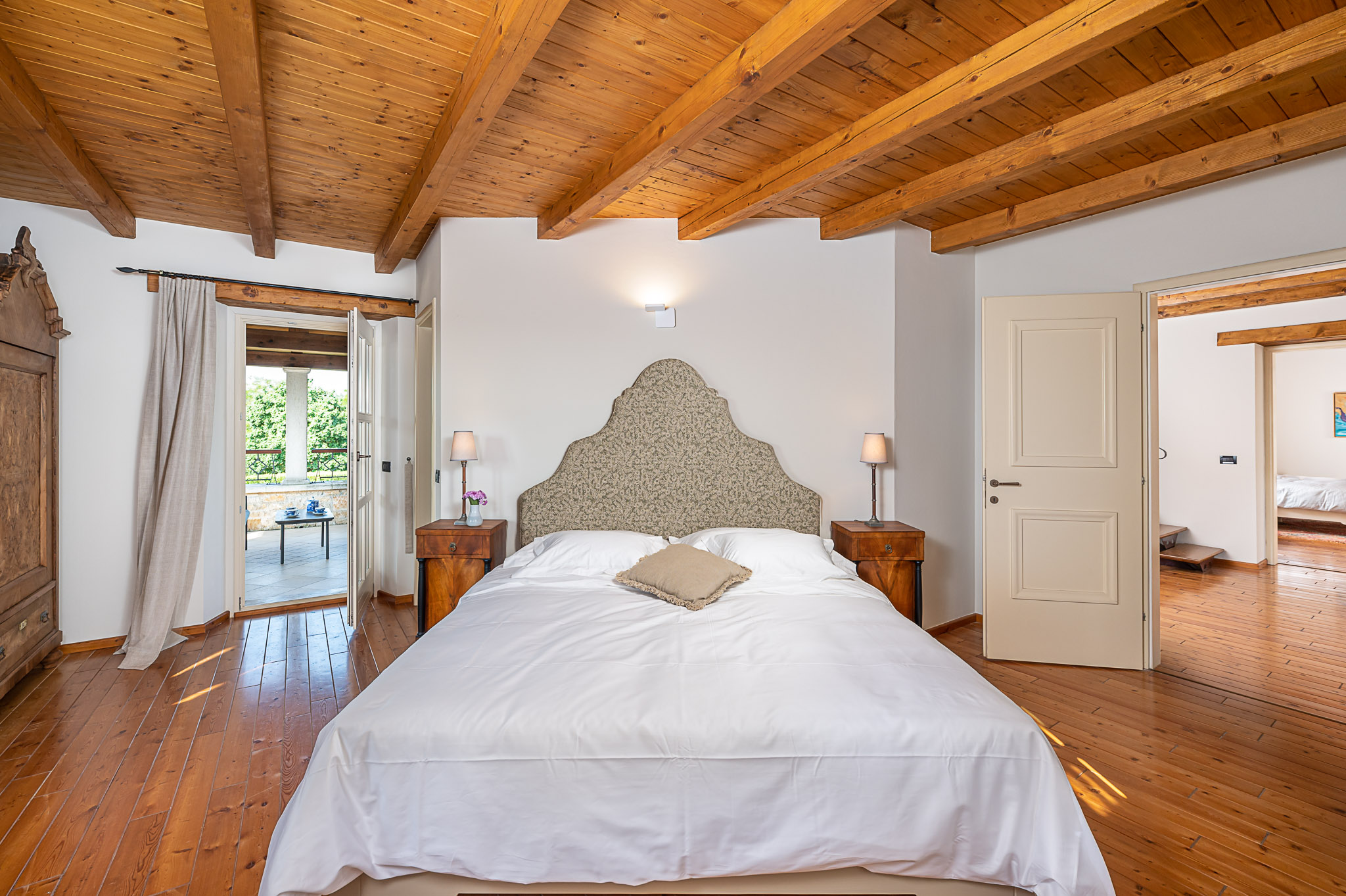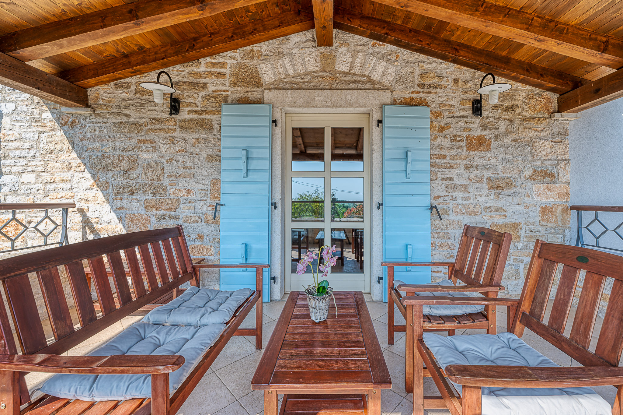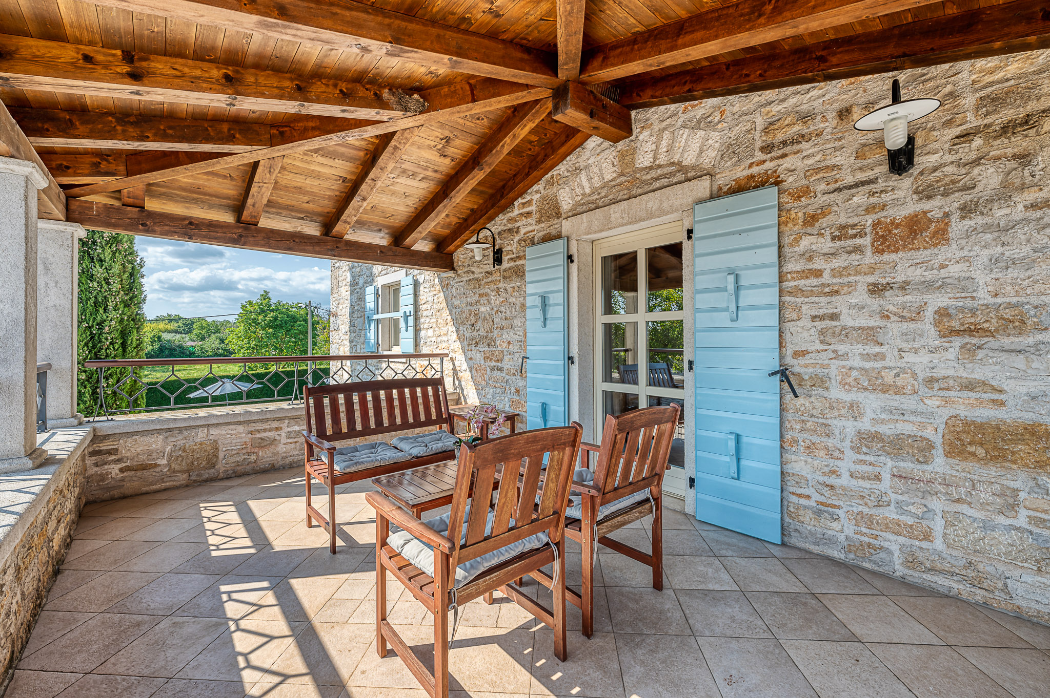 Večeri možete provesti i na jednoj od terasa kuće s kojih se pruža predivan pogled na zalazak sunca i pitom krajobraz ili ispod sjenice, uživajući u domaćem vinu i roštilju. Pažljivo uređeni vrtovi, velike travnate površine, mnoštvo lavande i ružmarina učiniti će svaki provedeni dan ovdje posebnim. Najmlađi će se veseliti igri na toboganu ili klackalici, igrajući badminton ili nogomet, možda igraćoj konzoli, ali zasigurno će najviše vremena provesti kupajući se u bazenu.