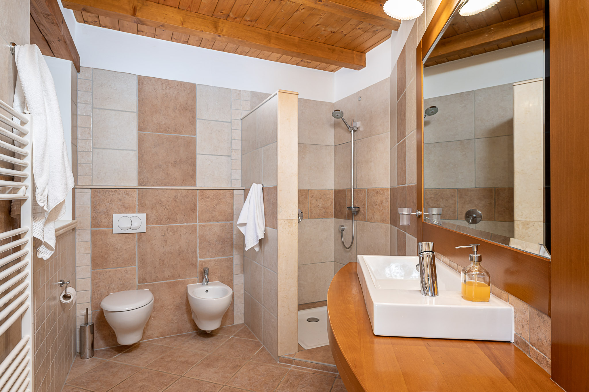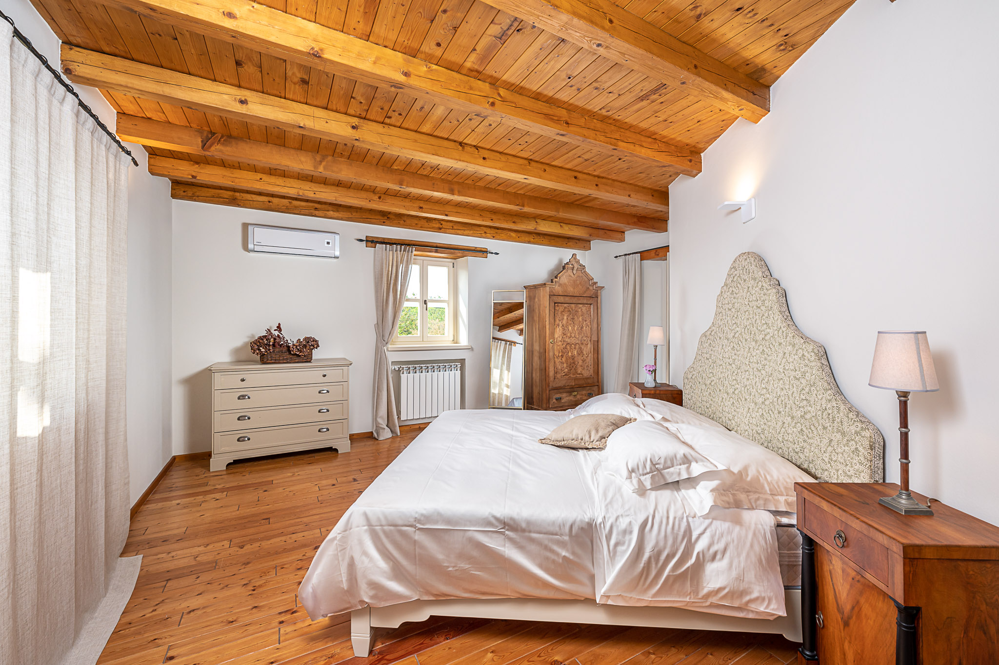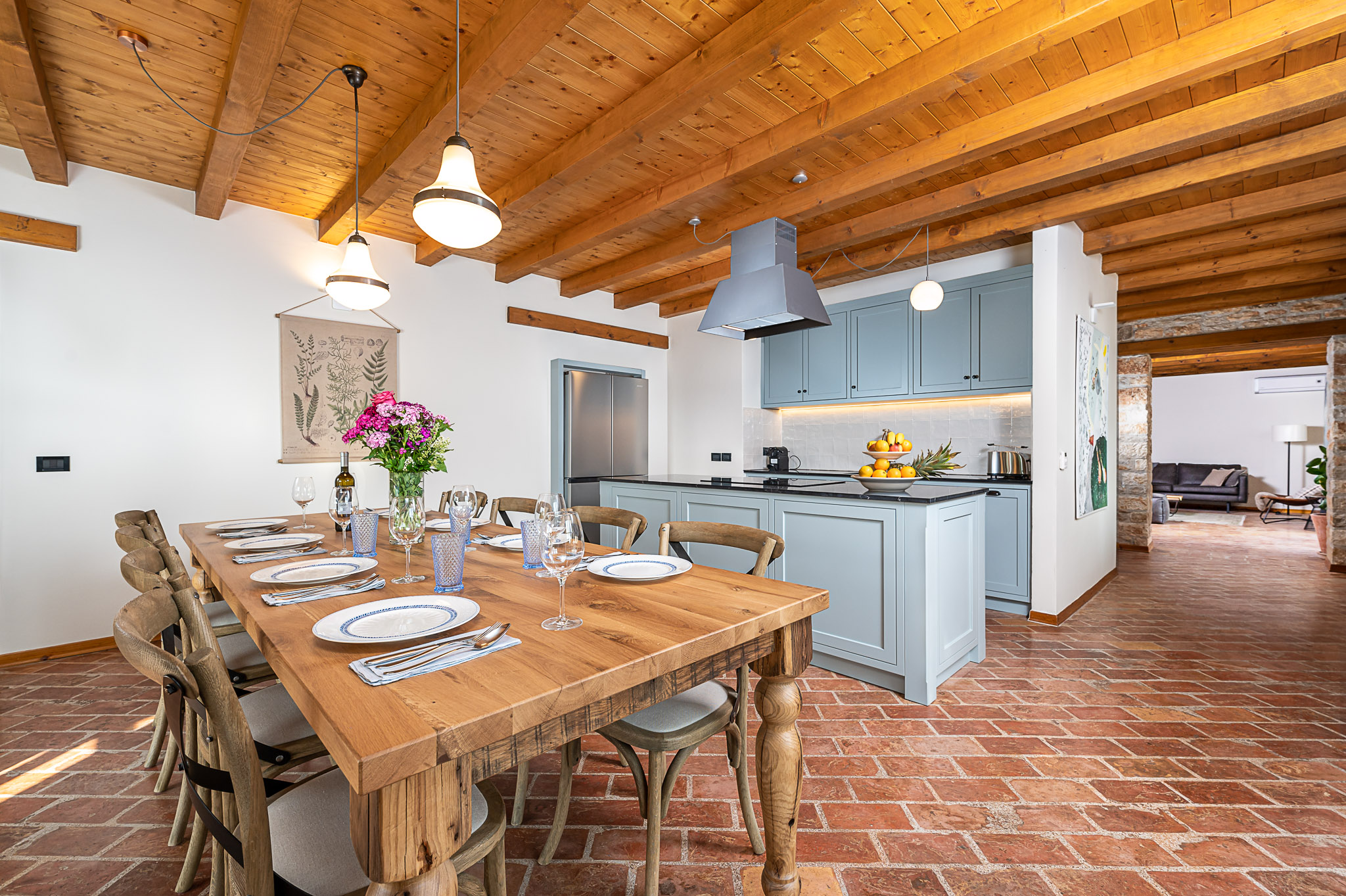 Na dva kata prostiru se četiri prostrane spavaće sobe, četiri kupaonice, kuhinja s blagavaonicom i dnevni prostor kojim dominira veliki otvoreni kamin, spreman da Vam svaku večer provedenu kraj njega učini beskrajnim užitkom i romantikom.